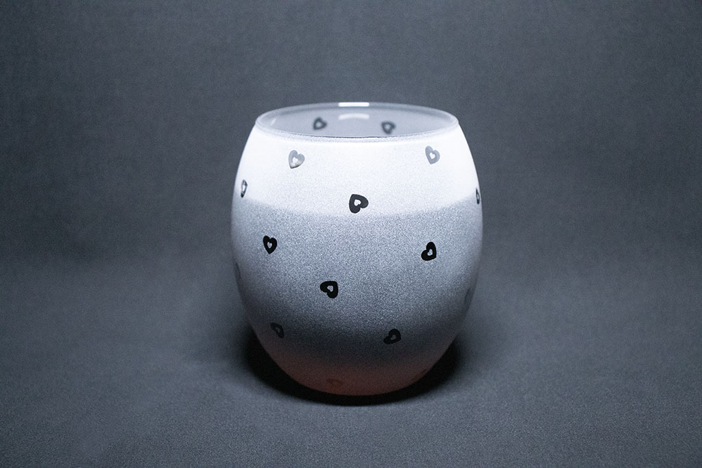 | Opis: | Ručno pjeskarena čaša s motivom namijenjena svakodnevnoj uporabi ili u dekorativne svrhe. |