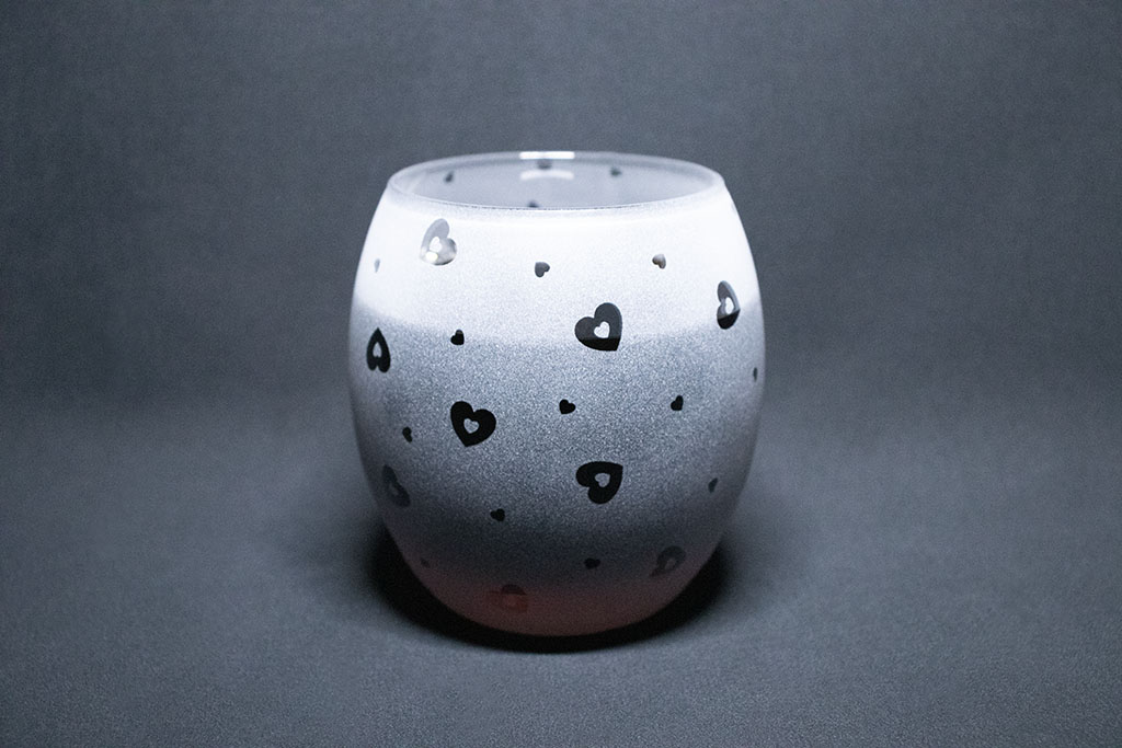 | Opis: | Ručno pjeskarena čaša s motivom namijenjena svakodnevnoj uporabi ili u dekorativne svrhe. |