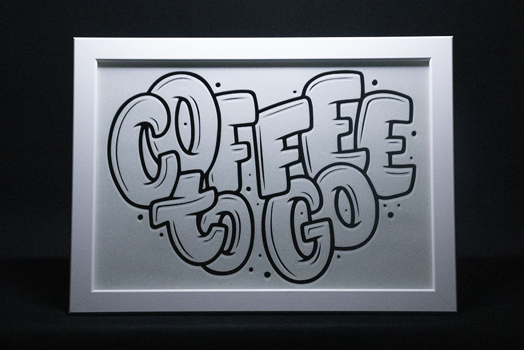 | Fotografije prikazuju primjere pjeskarenih proizvoda i njihove 2D motive. |